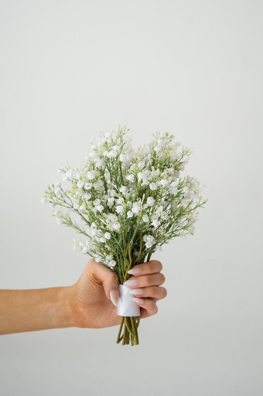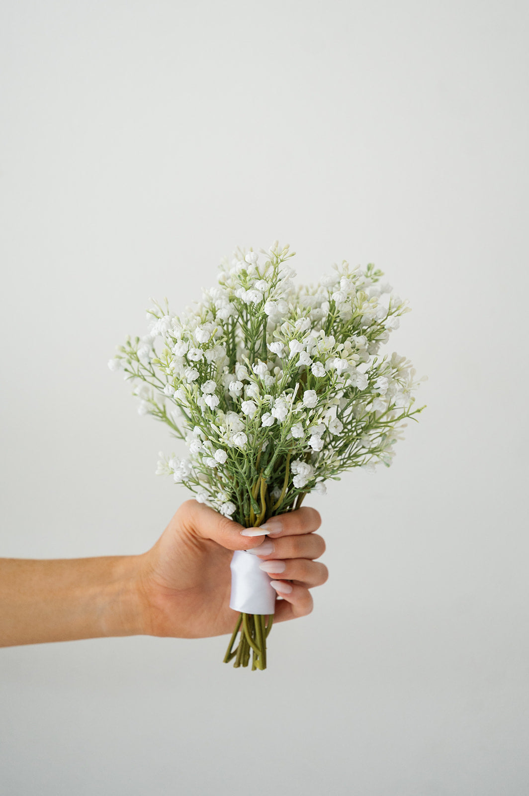Say hello to the stunning petite baby's breath bouquet. This beautiful little bouquet is the perfect chic touch for our understated brides and bridesmaids.